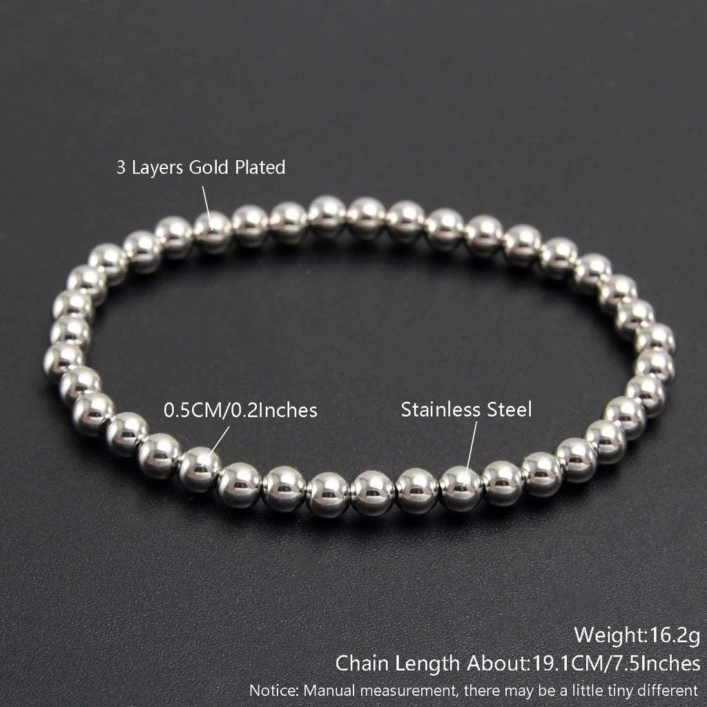 Com contas arredondadas em aço inoxidável, disponível nas cores Prateado ou Dourado, esta pulseira entrega um visual vintage e atemporal, perfeito para homens e mulheres que valorizam detalhes discretos, mas cheios de atitude.